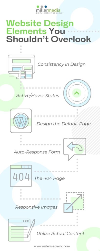 Color, typefaces, font sizes, image arrangement and more need to feel like they belong to the same brand. If possible, have a brand or style guide on hand that you can give to the designer and developer. You want to make sure your potential clients know you are professional and that their computer didn’t send them to a different company’s website.
