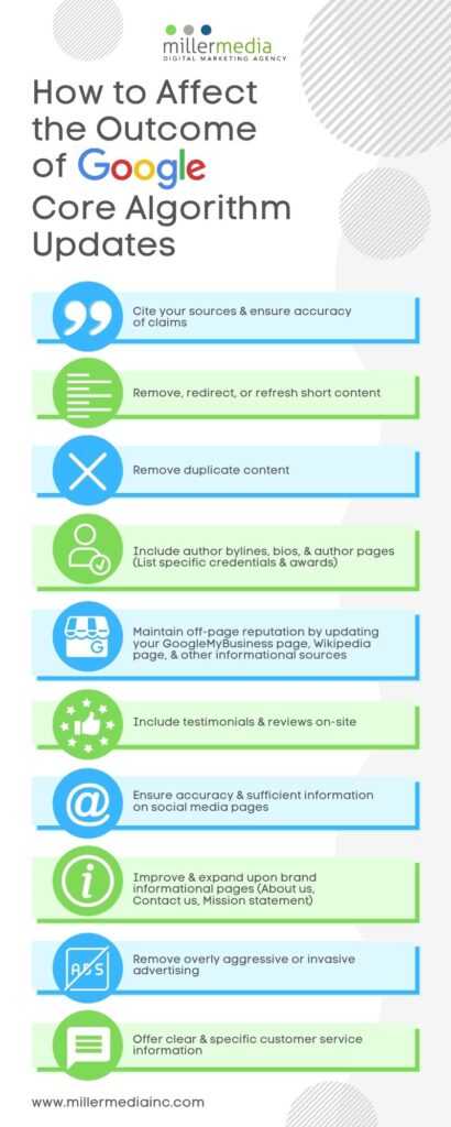 - Maintain off-page reputation by updating your GoogleMyBusiness page, Wikipedia page, & other informational sources